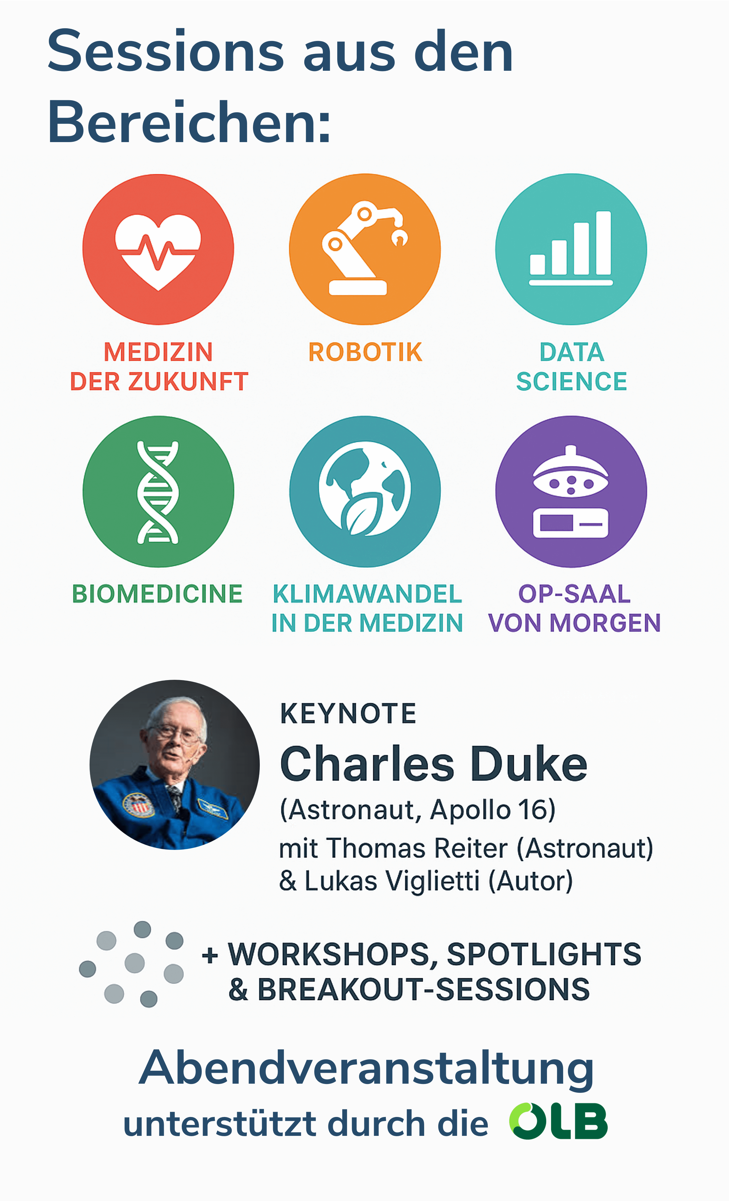Die Keynote „AI and Human Factors“ schlägt eine spannende Brücke zwischen den technischen Erfolgen der Vergangenheit und den Herausforderungen unserer digitalen Zukunft. Auf Initiative von Florian Noller und Dr. Kay Willborn konnten wir zu unserer großen Freude Charlie Duke, Thomas Reiter und Lukas Viglietti für diese Veranstaltung gewinnen. Sie werden vor Ort gemeinsam einen Bogen von den historischen Apollo-Missionen bis zur bevorstehenden Artemis-Mission der NASA und deren Partner spannen.
